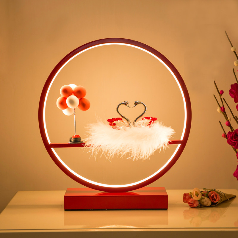 结婚台灯红色婚房喜庆装饰水晶天鹅床头灯温馨创意智能卧室中式灯