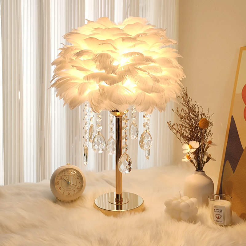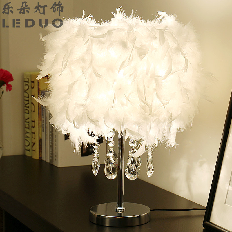 羽毛水晶台灯卧室ins少女创意北欧床头灯浪漫温馨结婚床头羽毛灯