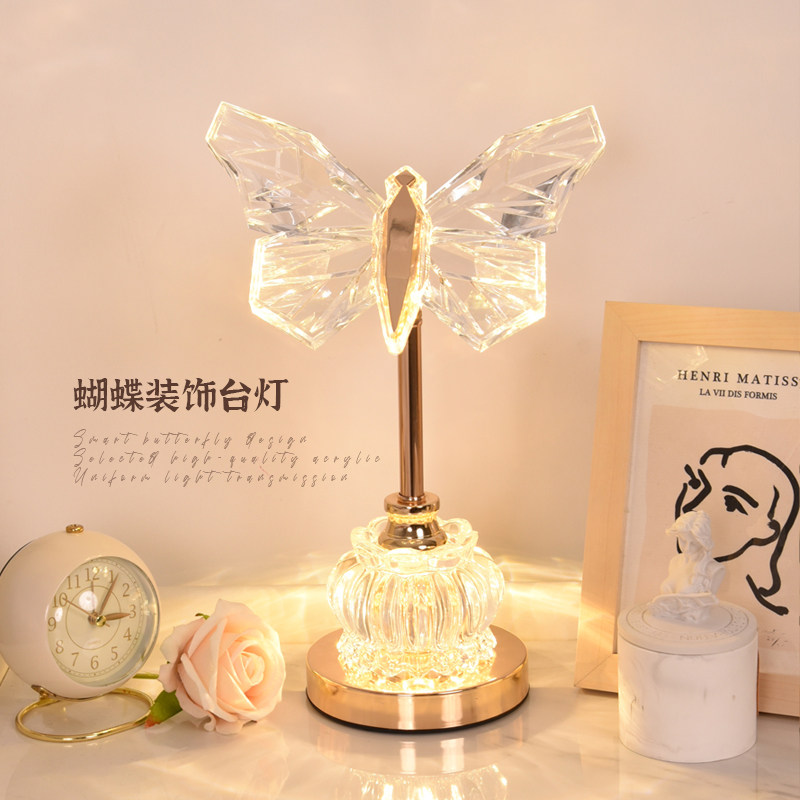 蝴蝶台灯卧室床头柜灯温馨简约现代创意水晶玻璃高级感氛围主卧灯