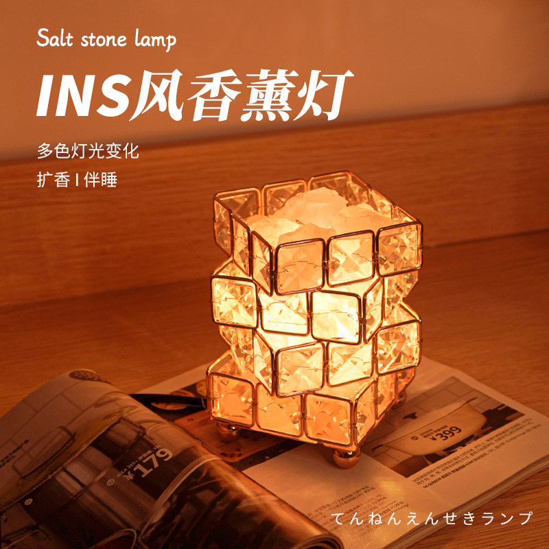 水晶盐灯小夜灯卧室睡眠床头灯香薰魔方台灯高级感情调氛围送礼物