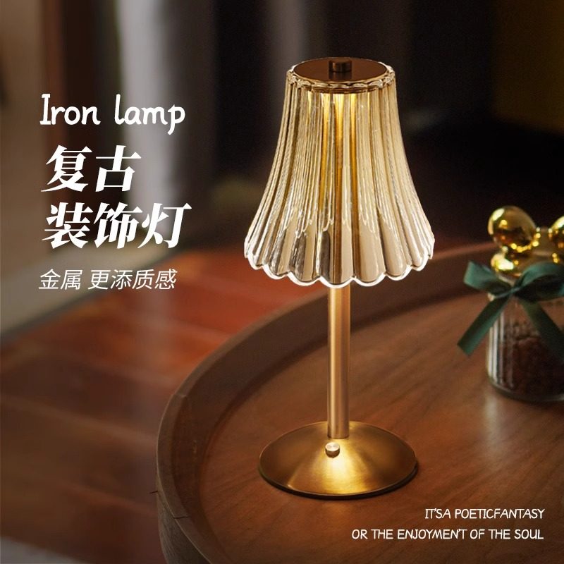 网红氛围灯ins卧室床头线条小夜灯浪漫桌灯酒吧摆摊装饰水晶台灯