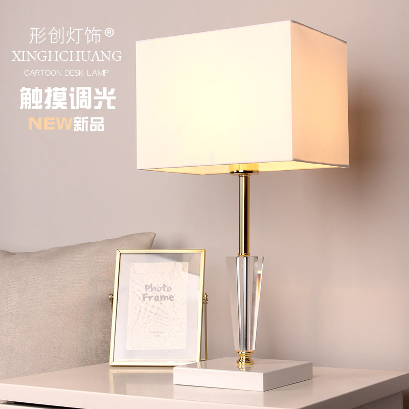 美式台灯卧室床头灯现代简约客厅可调光触摸遥控温馨水晶仿铜台灯