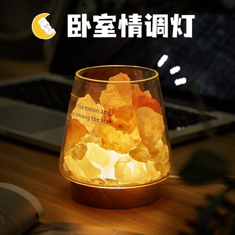 桌面氛围灯酒吧桌灯小夜灯水晶岩石灯台灯装饰盐灯电脑餐桌外摆件