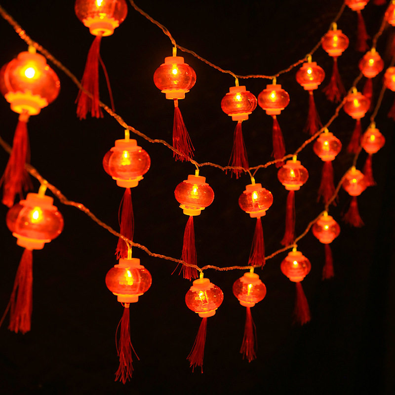 水晶发光LED小红灯笼新年布置彩灯闪灯串灯带电塑料灯笼串彩灯条