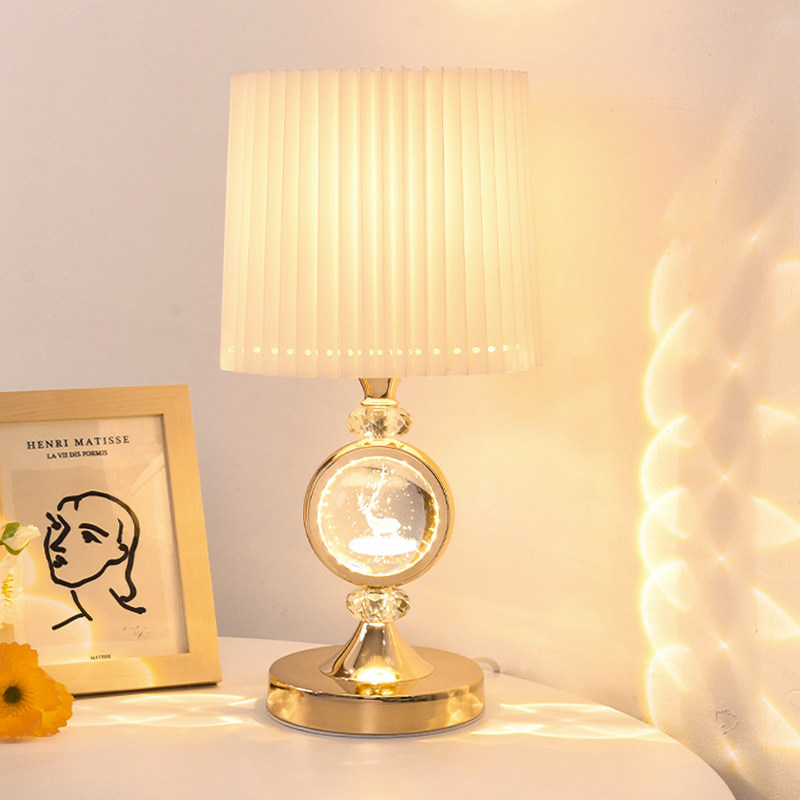 高级感台灯卧室床头柜灯麋鹿轻奢2023新款现代水晶主卧光影氛围灯