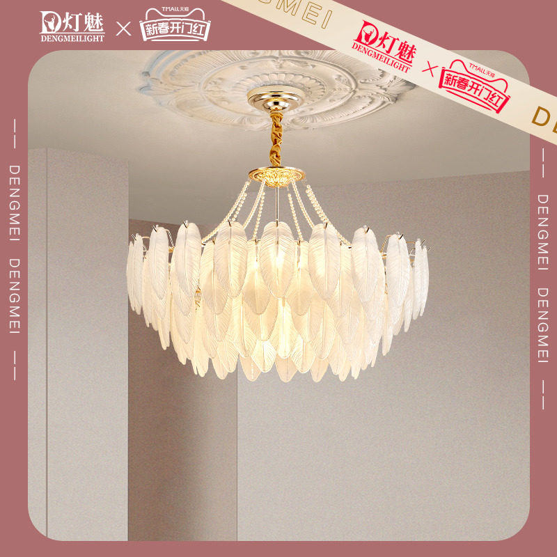 法式华丽复古珍珠玻璃餐厅卧室灯具奶油风高级感轻奢水晶客厅吊灯