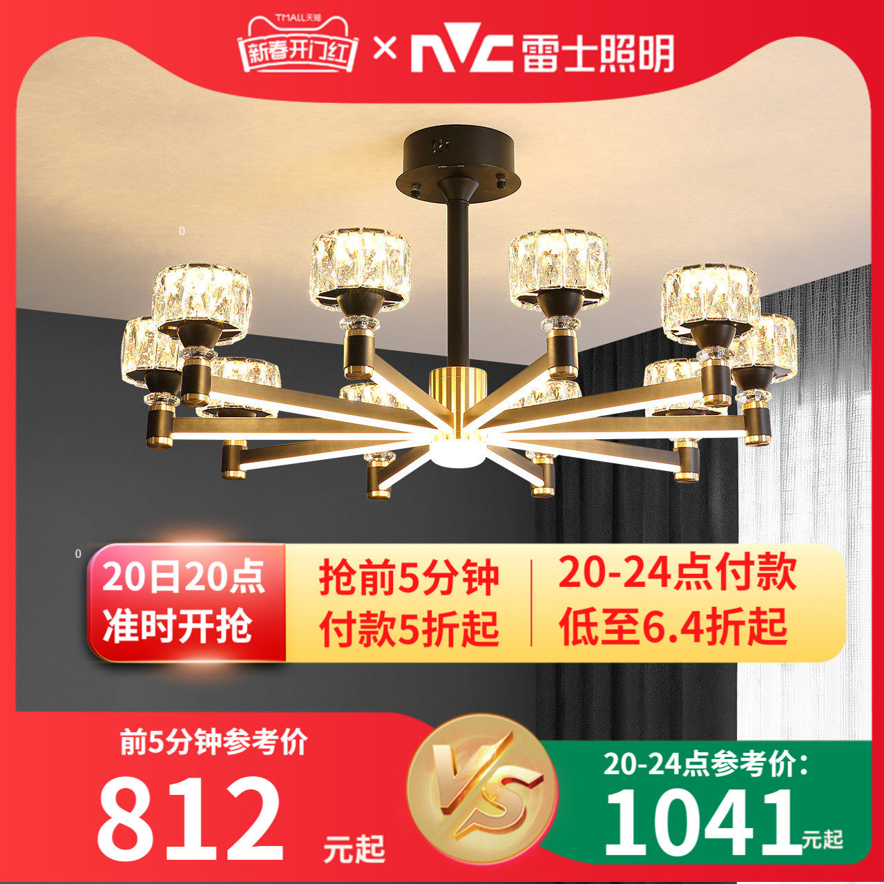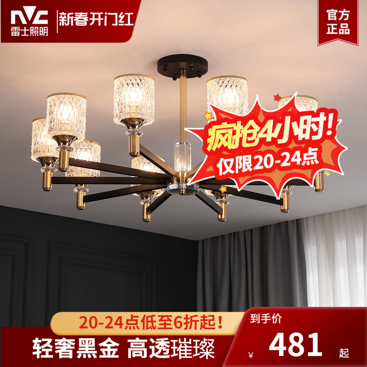 雷士照明现代简约轻奢客厅吊灯主灯客厅灯卧室灯水晶护眼灯具丽影