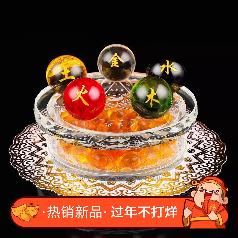 红黄透明水晶球摆件五行金木水火土阵家居客厅开业装饰品五路财神