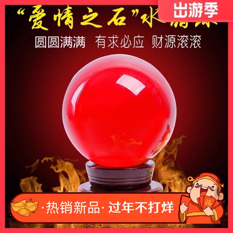 天然红色水晶球摆件原石居家时来运转风生水起鸿运当头高端装饰品