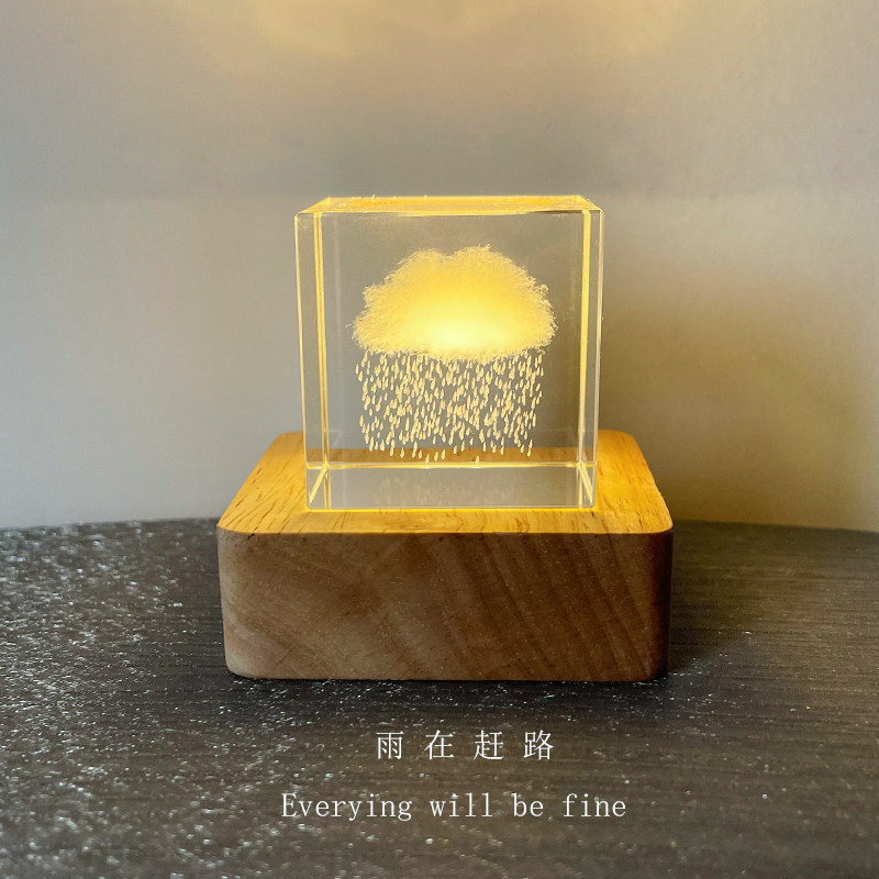 雨在赶路 创意云朵立方体桌面摆件下雨水晶球小夜灯治愈生日礼物