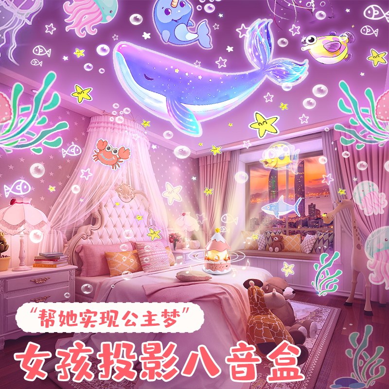 儿童生日礼物小女孩子水晶球音乐八音盒公主12岁实用的投影灯玩具