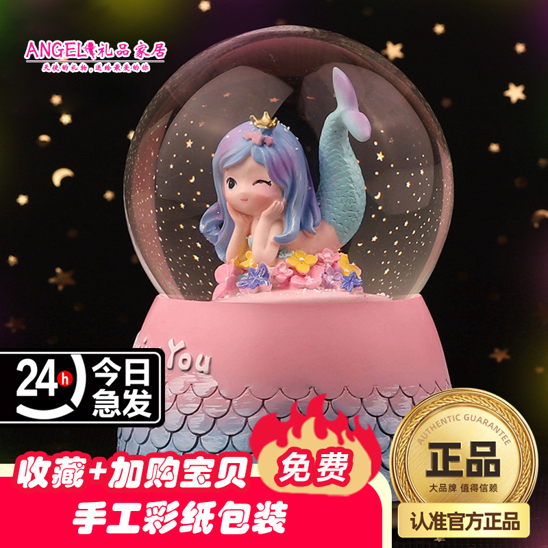 美人鱼音乐盒水晶球带灯飘雪透明圆球八音盒女孩女童女生生日礼物