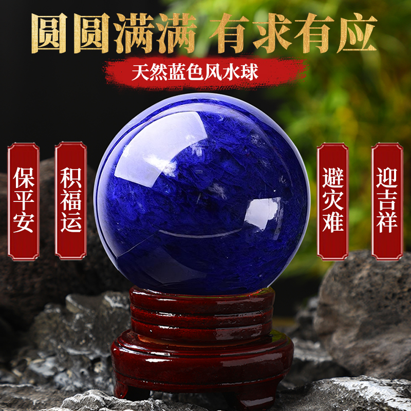 天然蓝色水晶球摆件熔炼球转运球原石打磨客厅玄关家居装饰工艺品
