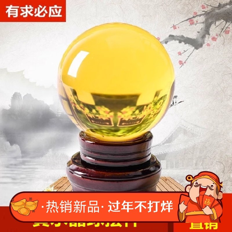 纯天然黄色真水晶球招财风水球高端摆件大小号做生意聚财客厅装饰