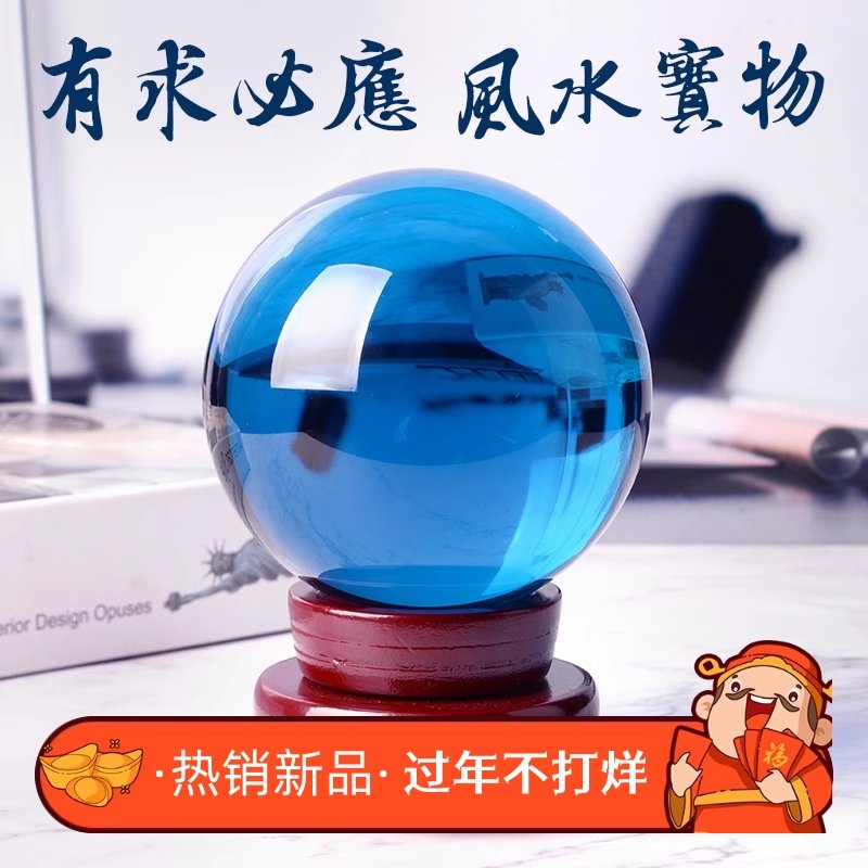 特价高档大小蓝色水晶球摆件开业乔迁招财客厅家居装饰品新年摆件