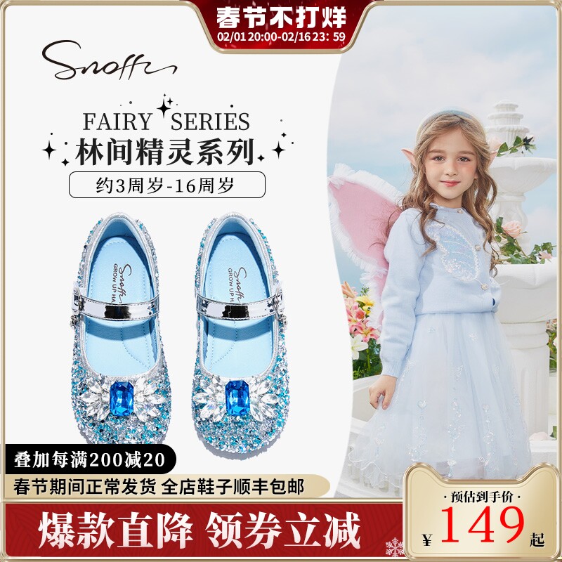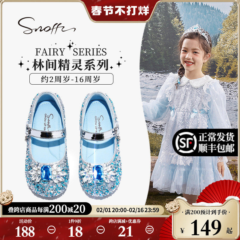 Snoffy斯纳菲女童水晶鞋爱莎公主鞋2023秋季新演出舞蹈鞋儿童单鞋