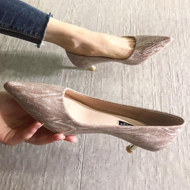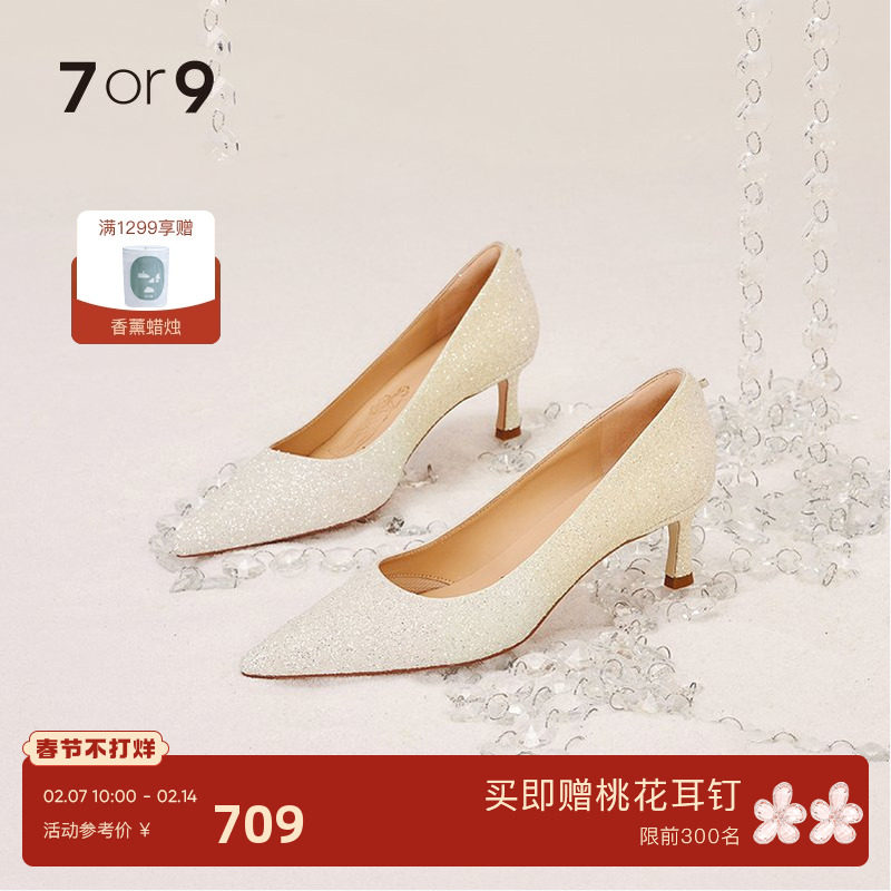 7or9玛格丽特粗跟高跟鞋气质名媛婚鞋水晶鞋3公分尖头单鞋空气棉