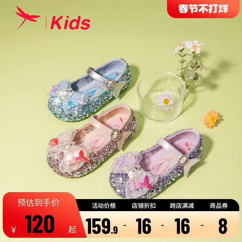 红蜻蜓女童鞋2024春季新款水晶鞋爱莎美人鱼公主鞋舞台演出鞋舒适
