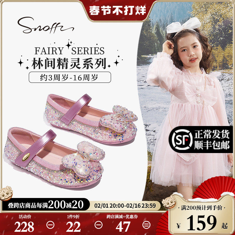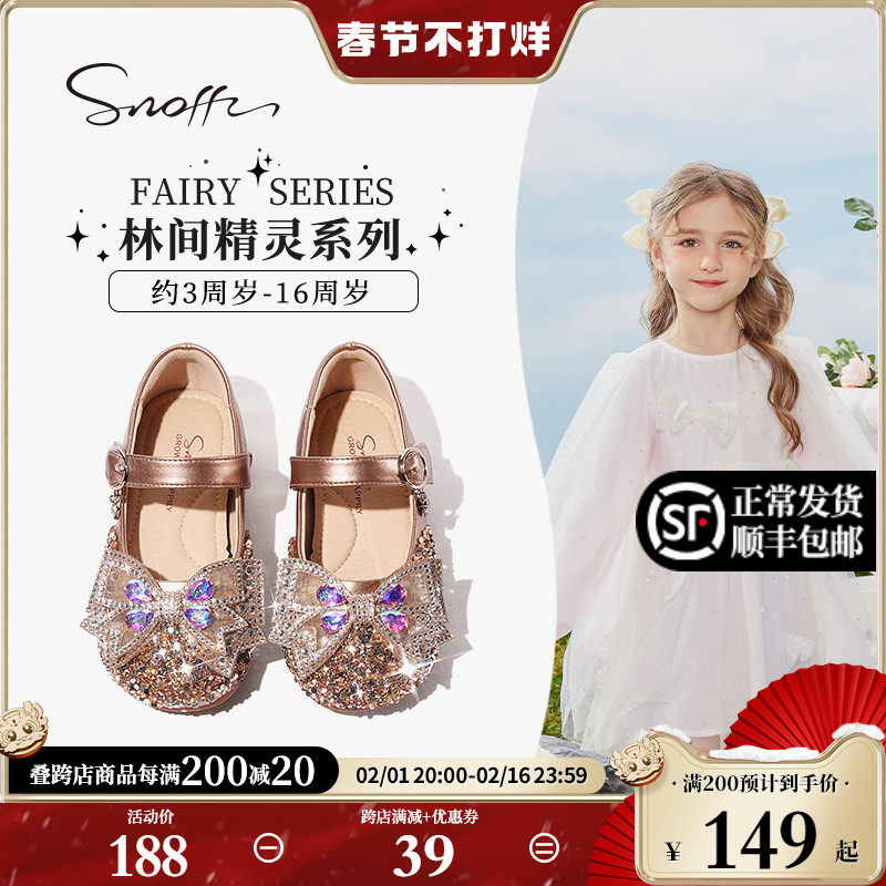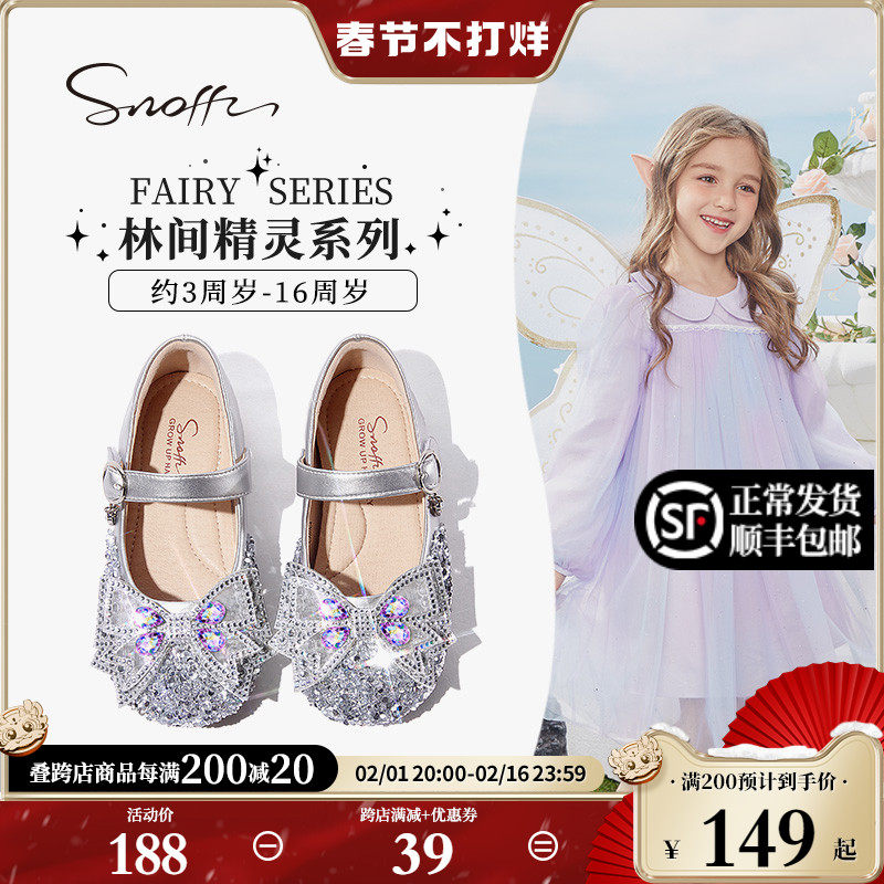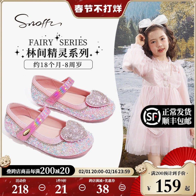 Snoffy斯纳菲女童水晶公主鞋2024春秋季新款儿童皮鞋宝宝软底单鞋