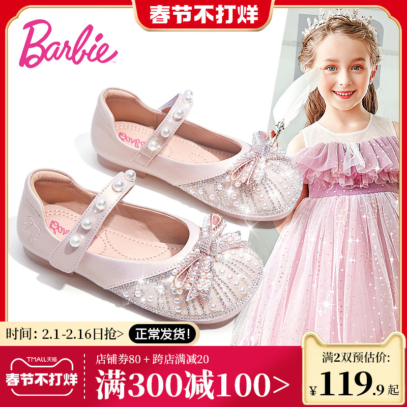 芭比童鞋小皮鞋女童公主鞋配礼服2023新款春秋水晶鞋儿童皮鞋小童