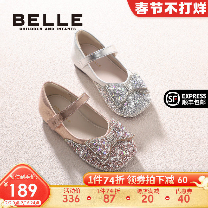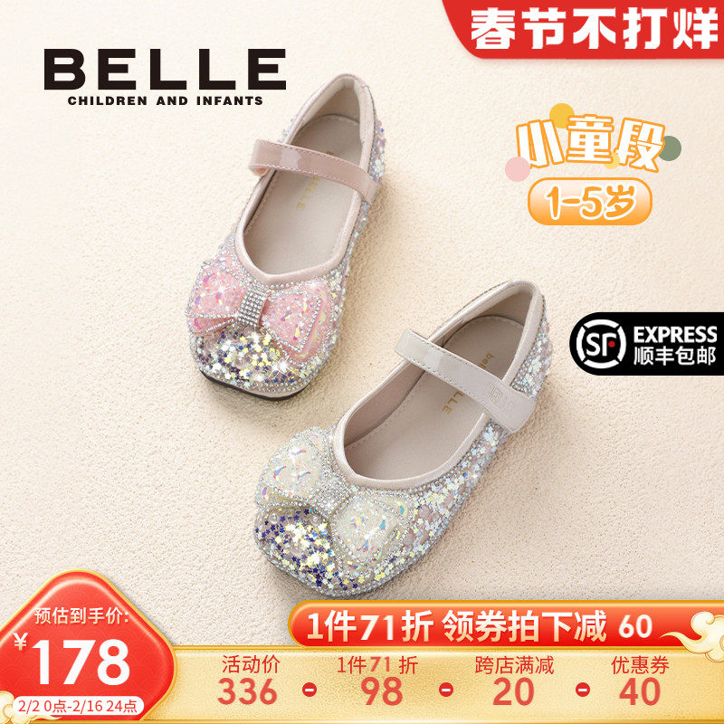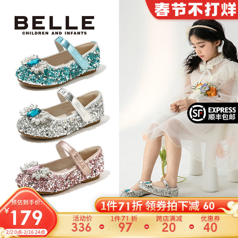 百丽童鞋女童爱莎公主鞋春季新款皮鞋儿童水晶鞋亮片鞋小女孩单鞋