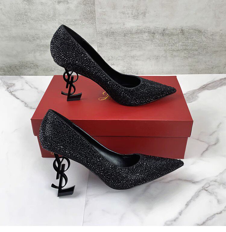 2023年春秋季百搭新款单鞋性感尖头水钻水晶法式黑色高跟鞋女细跟