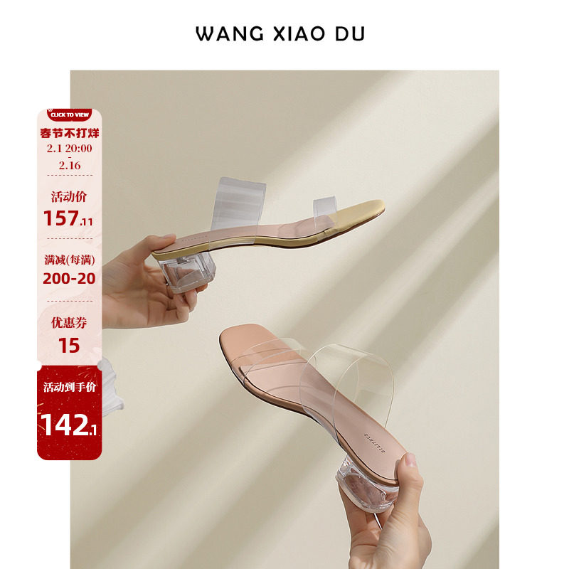 包头透明凉鞋女仙女风夏新款细跟网红水钻性感名媛气质水晶高跟鞋