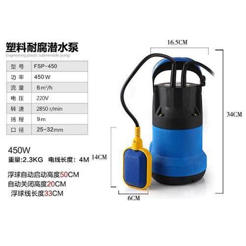 SPP100塑料泵潜水泵花园泵地面吸干泵浇花浇菜地下室抽积水潜水泵