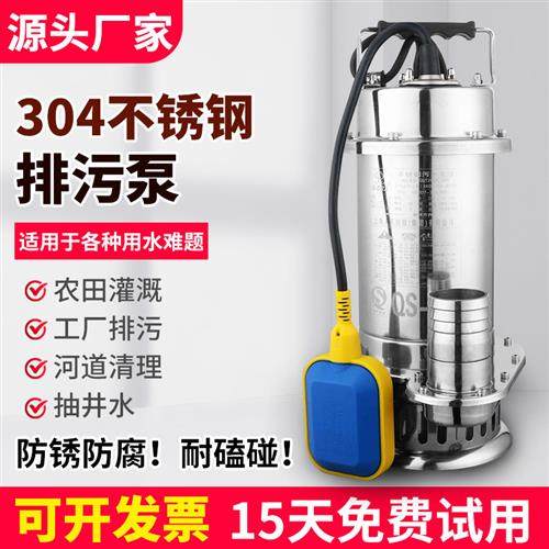 全不锈钢潜水泵家用220v高扬程清水泵耐腐蚀农用污水泵304抽水泵