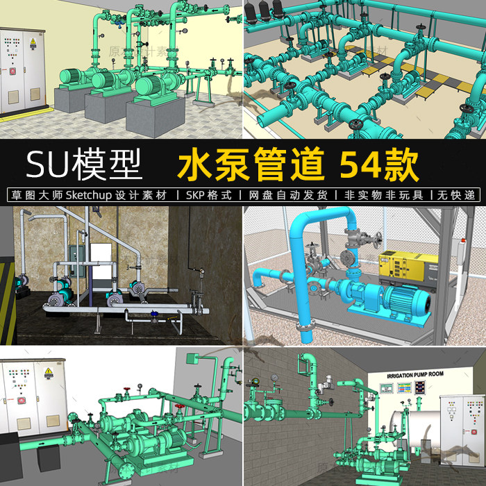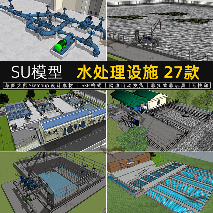 SU模型水处理设施水厂供水设备污水过滤装置水泵管道草图大师素材