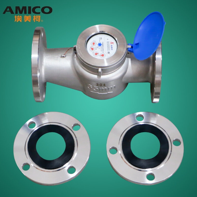 正品埃美柯304不锈钢法兰水表自来水冷水表国标数字直读机械表028