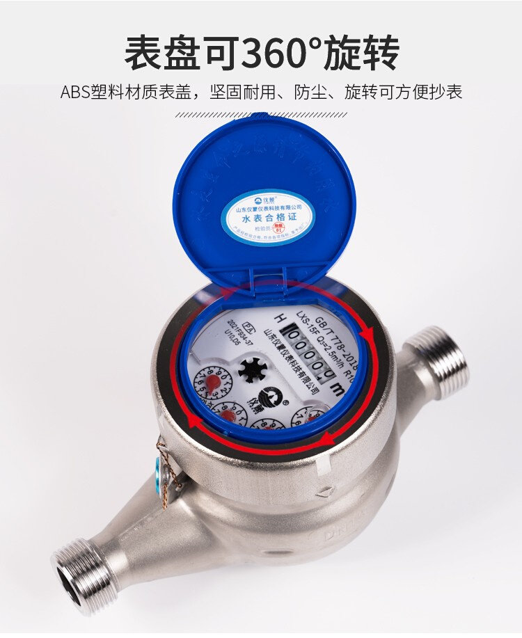 旋翼水表不锈钢高灵敏指针防滴自来水表家用水表4分6分数字水表