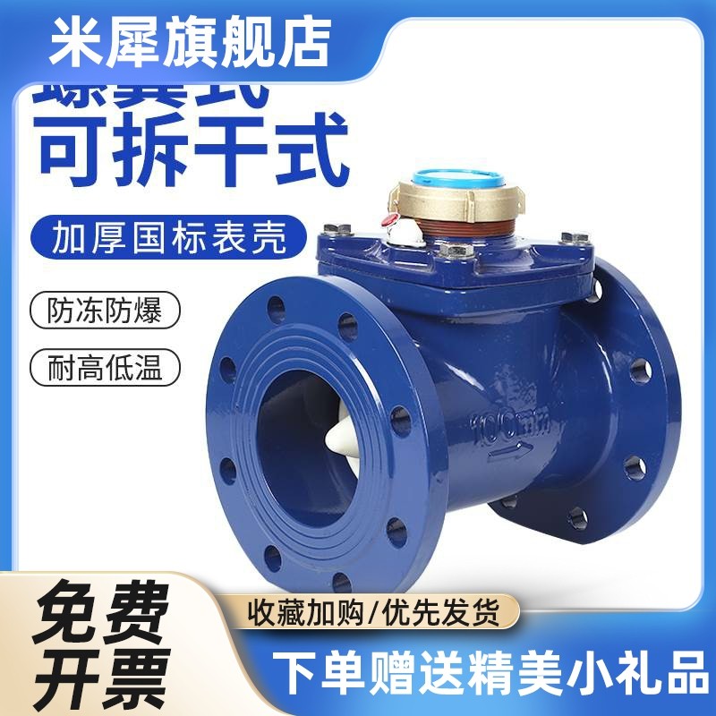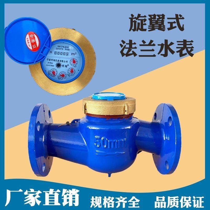 埃美柯法兰水表dn50铁壳法兰旋翼湿式冷水表丝接机械099球磨铸铁