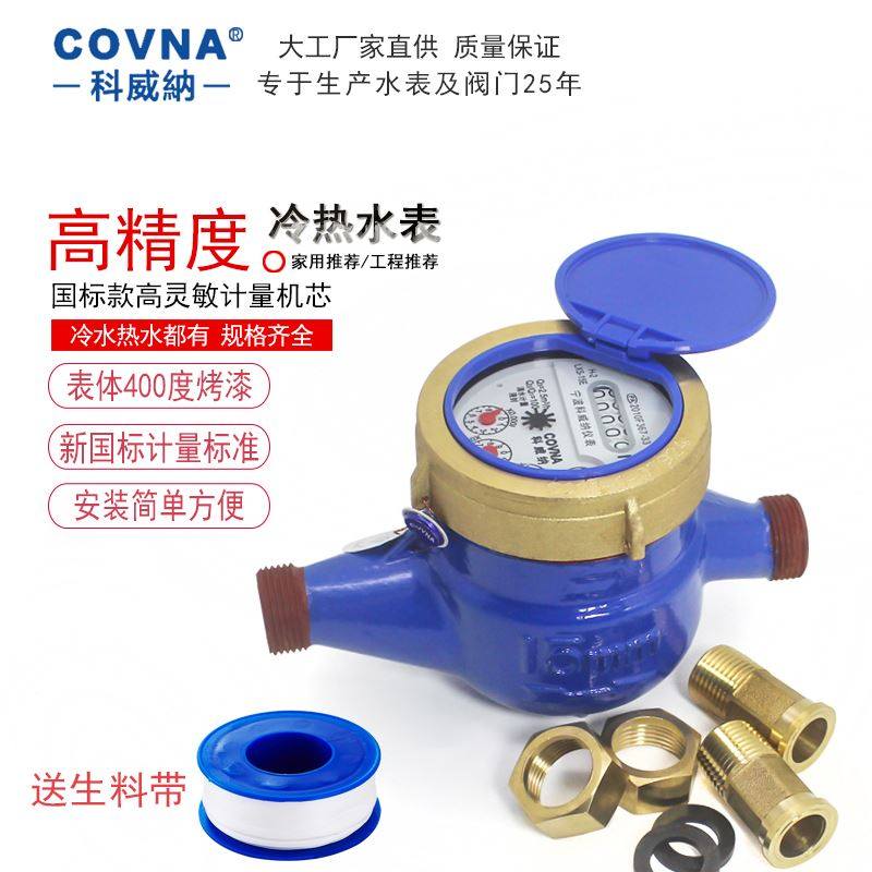 宁波科威纳国标螺纹冷热水表液封高灵敏滴水家用自来水效检4分6分