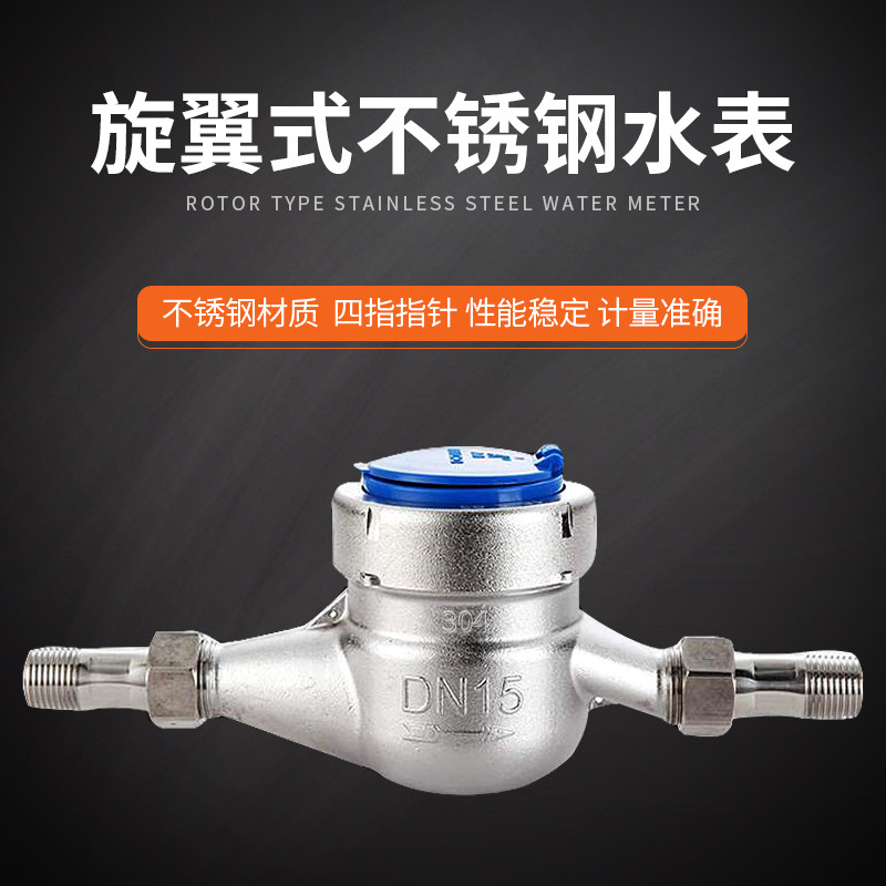 旋翼式水表不锈钢高灵敏指针防滴漏自来湿式水表家用出租房4分6分