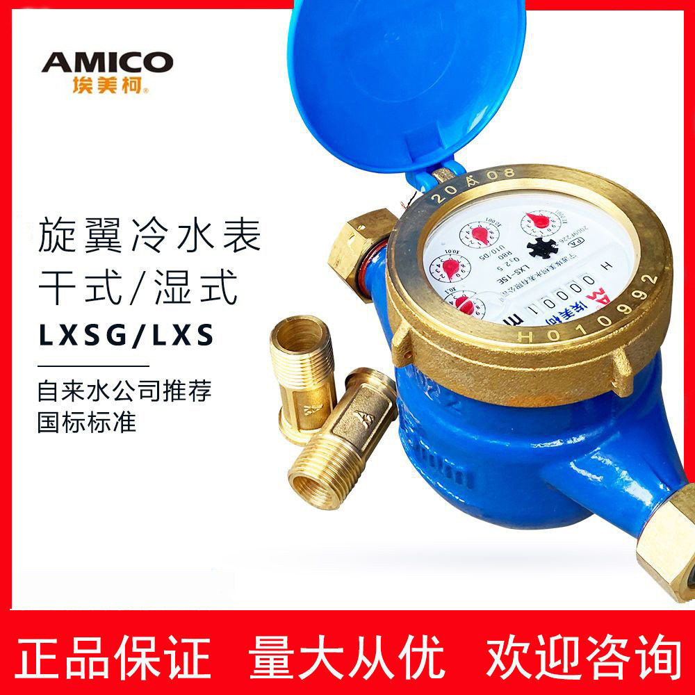 宁波埃美柯水表 家用4分自来水铜罩铜接旋翼式机械表螺纹湿式水表
