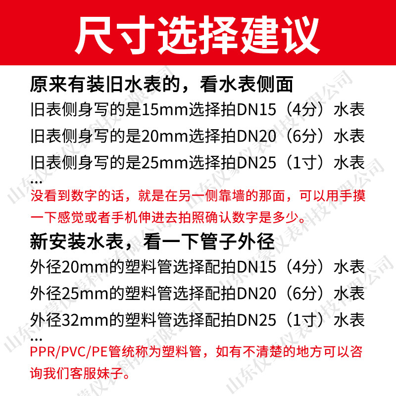 旋翼式高灵敏水表滴水计数水表 家用出租房冷水表4分6分DN15 20