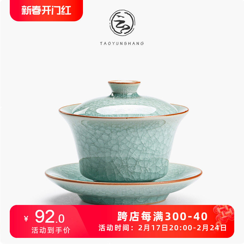容山堂天青汝窑开片陶瓷青瓷三才盖碗茶杯套装功夫茶具泡茶碗大号