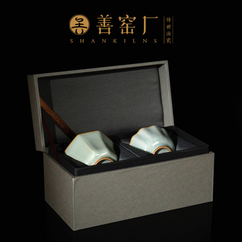 善窑厂李善明汝窑汝瓷情侣对杯茶具套装礼盒装八方牡丹单杯主人杯