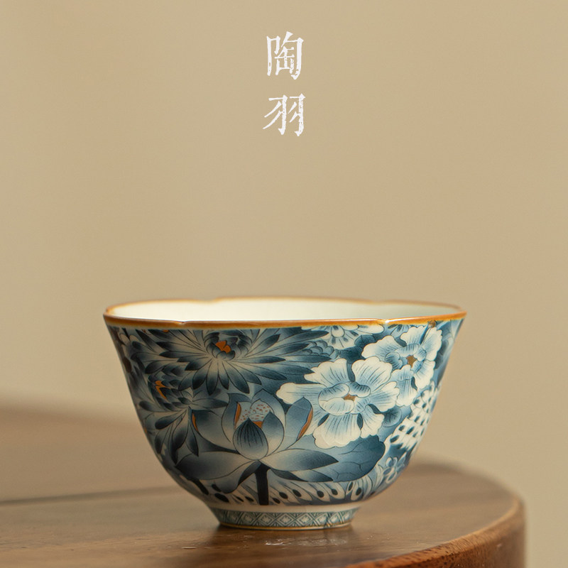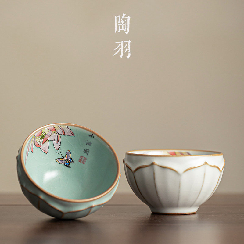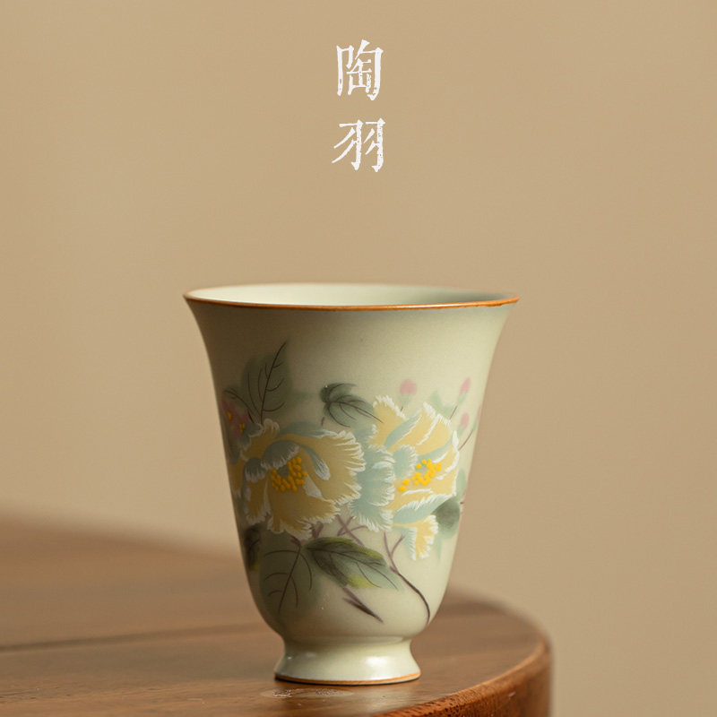汝窑金万花主人杯茶杯高档品茗杯单个陶瓷个人专用功夫茶具茶盏