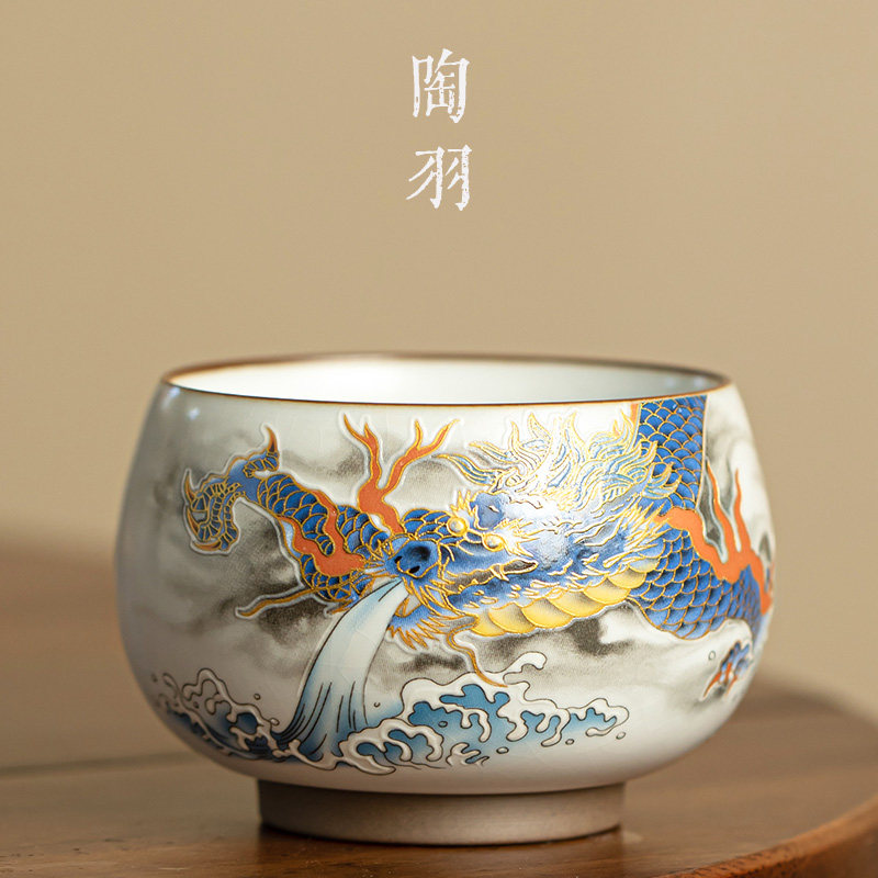 汝窑祥龙茶杯主人杯单杯开片茶盏高档个人专用功夫茶具陶瓷品茗杯