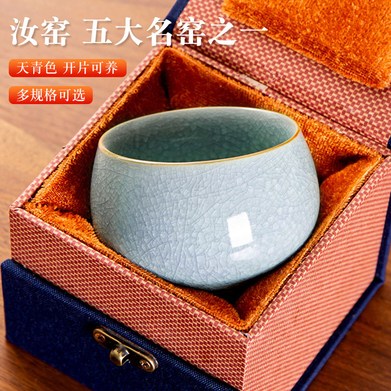 冰花主人杯功夫茶杯套装冰裂釉开片汝窑茶具品茗杯裂纹杯陶瓷礼盒