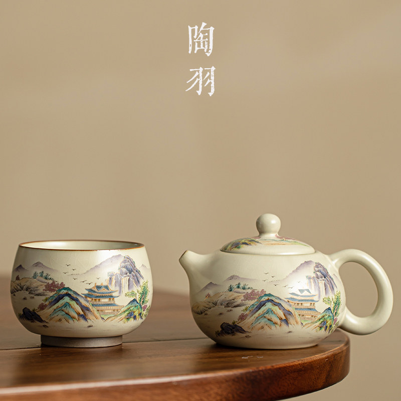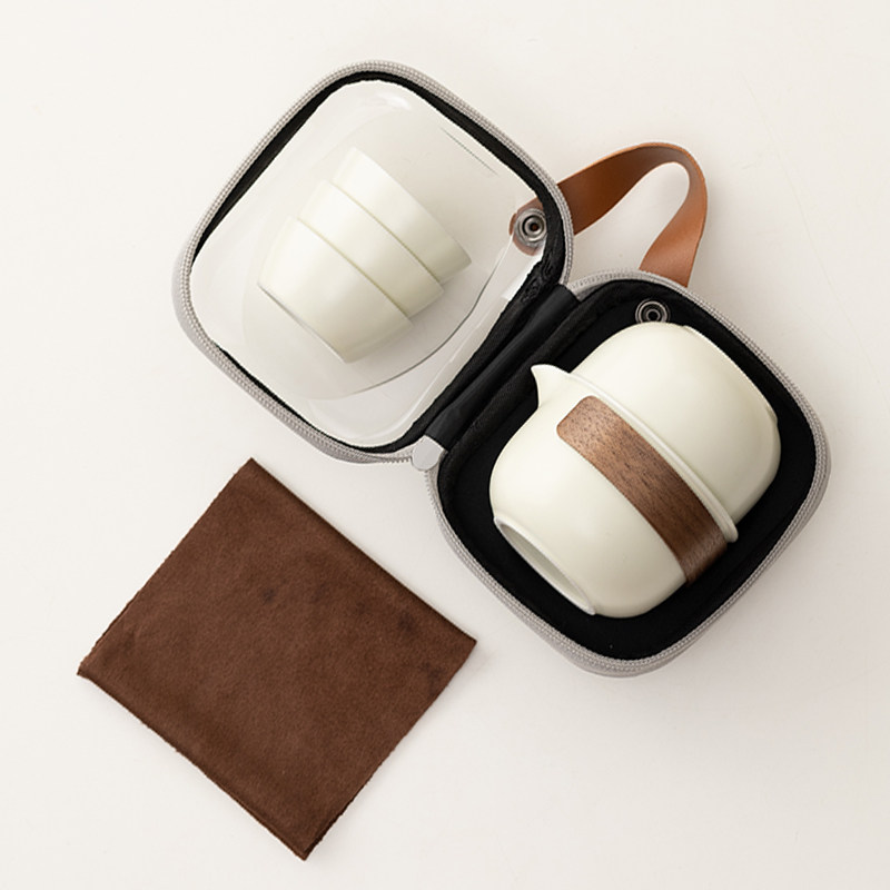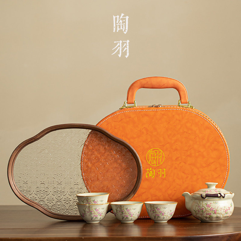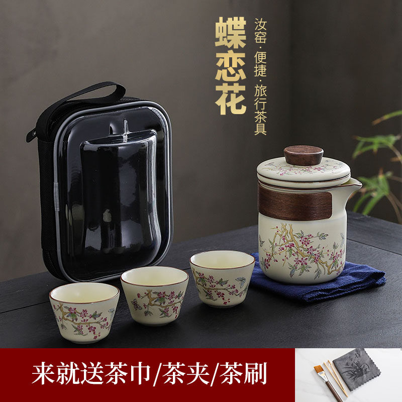 汝窑便携式旅行茶具小套装户外露营旅游一壶四杯随身包快客杯定制