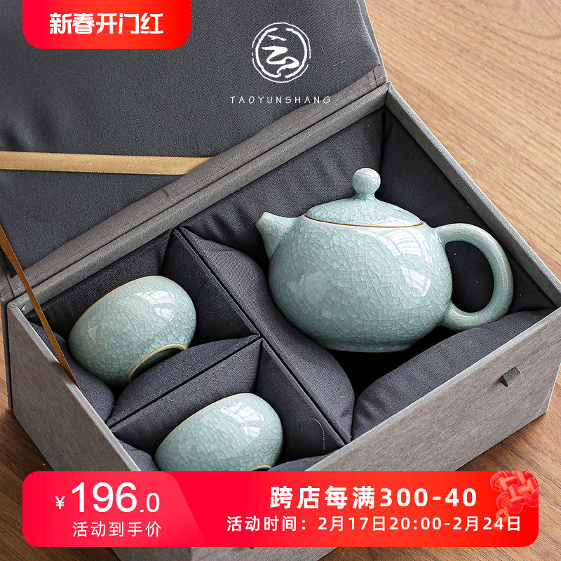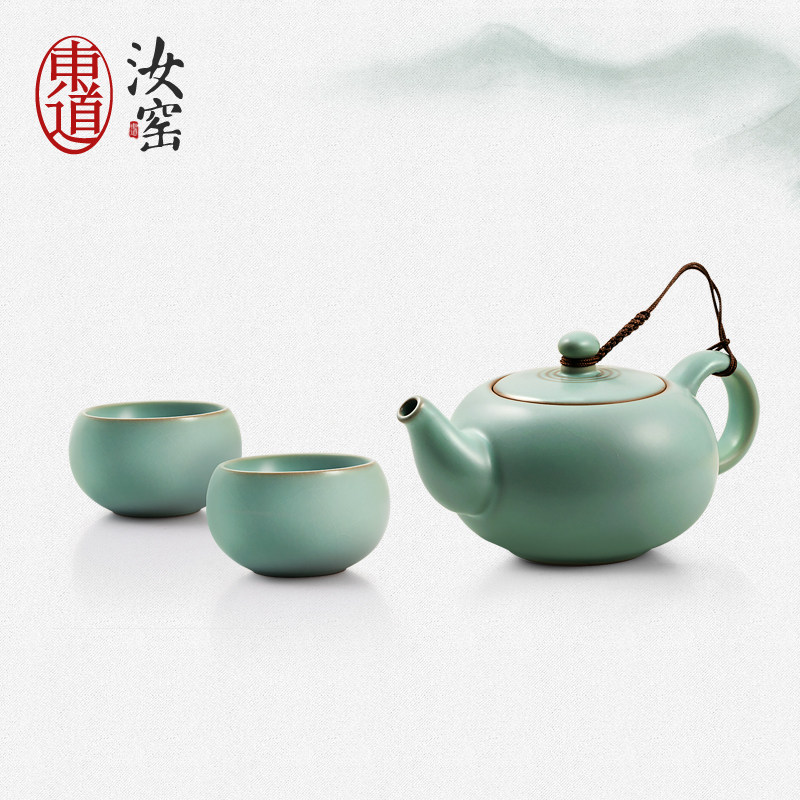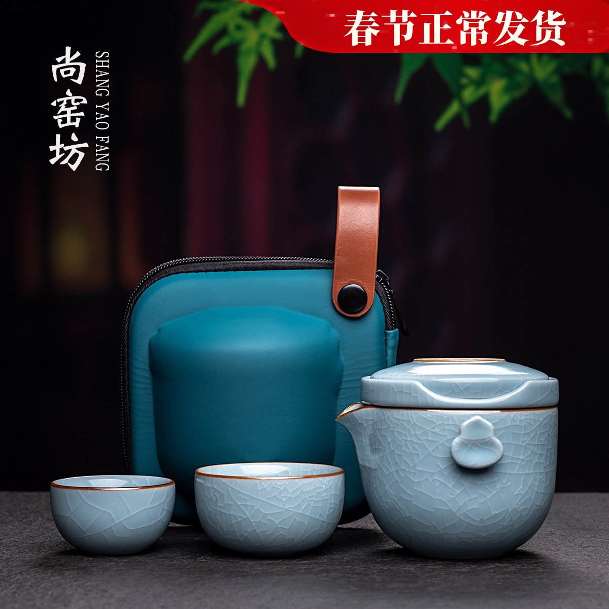 汝窑冰花开片一壶两杯便携陶瓷旅行茶具泡茶壶户外功夫茶具送礼