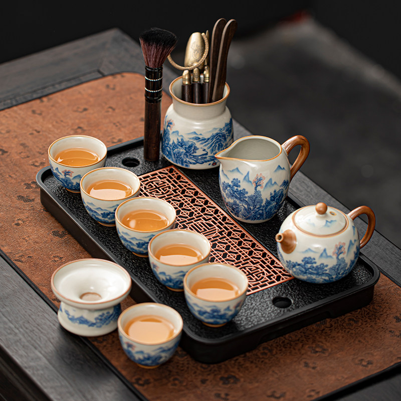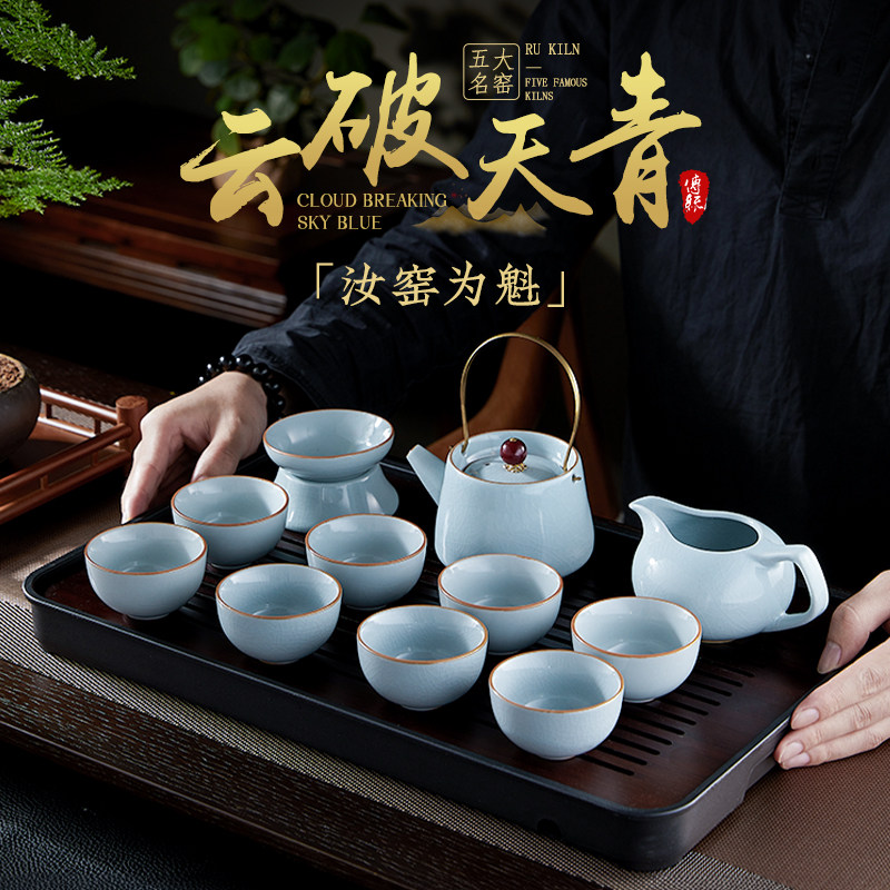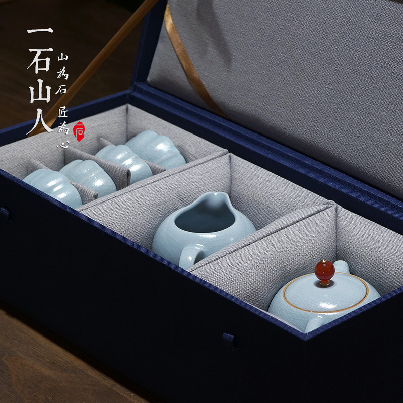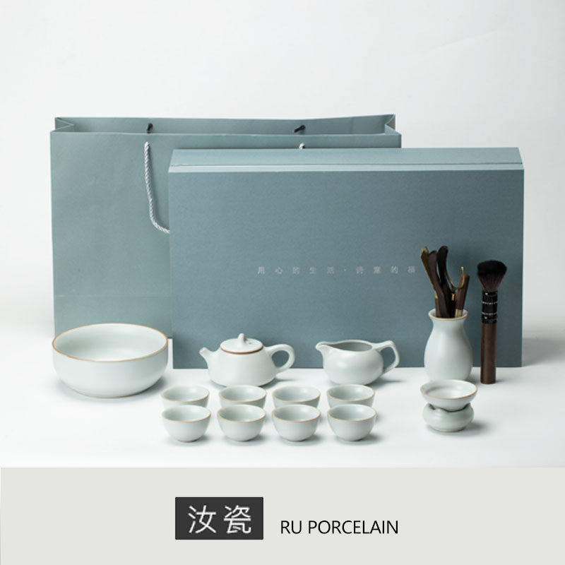 容山堂汝窑汝瓷整套功夫茶具轻奢高档家用陶瓷盖碗便携式礼盒装