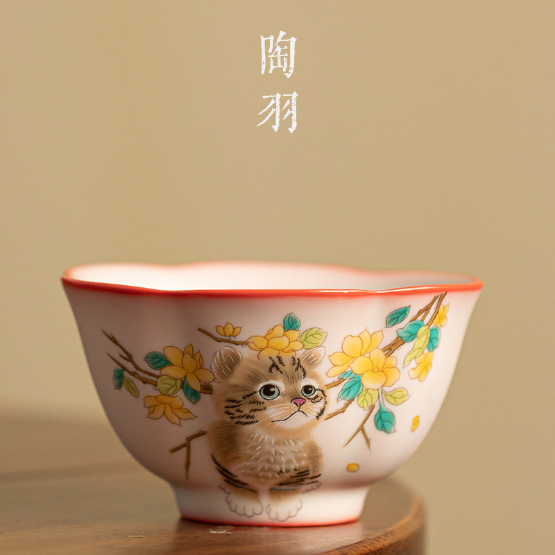 汝窑猫咪茶杯主人杯单杯开片茶盏高档个人专用功夫茶具陶瓷品茗杯