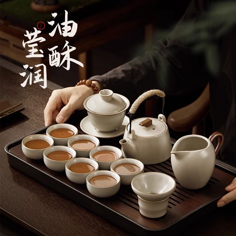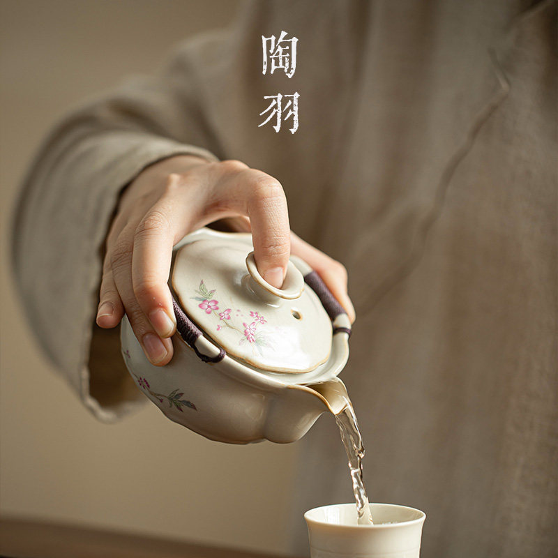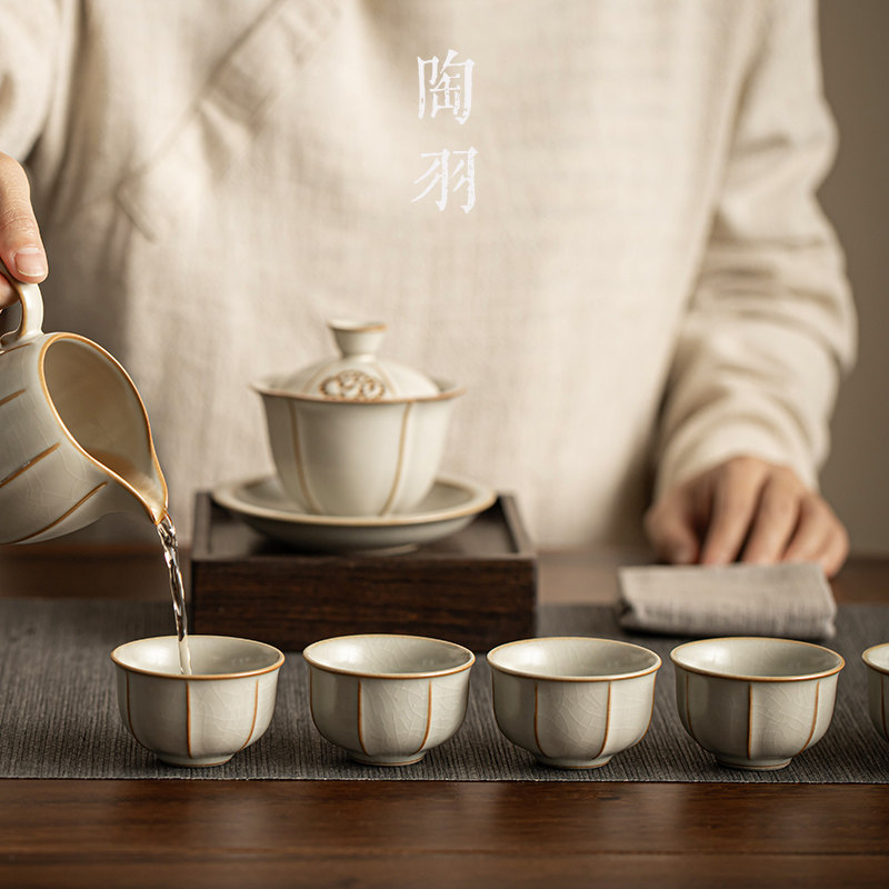 米黄汝窑手抓壶盖碗女士茶具一壶二四杯防烫泡茶碗茶杯功夫茶具