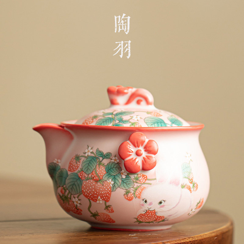汝窑草莓兔手抓壶家用盖碗茶杯功夫茶具泡茶壶一壶二杯防烫单壶