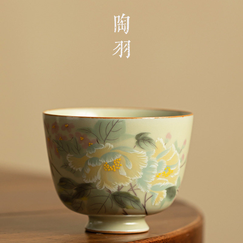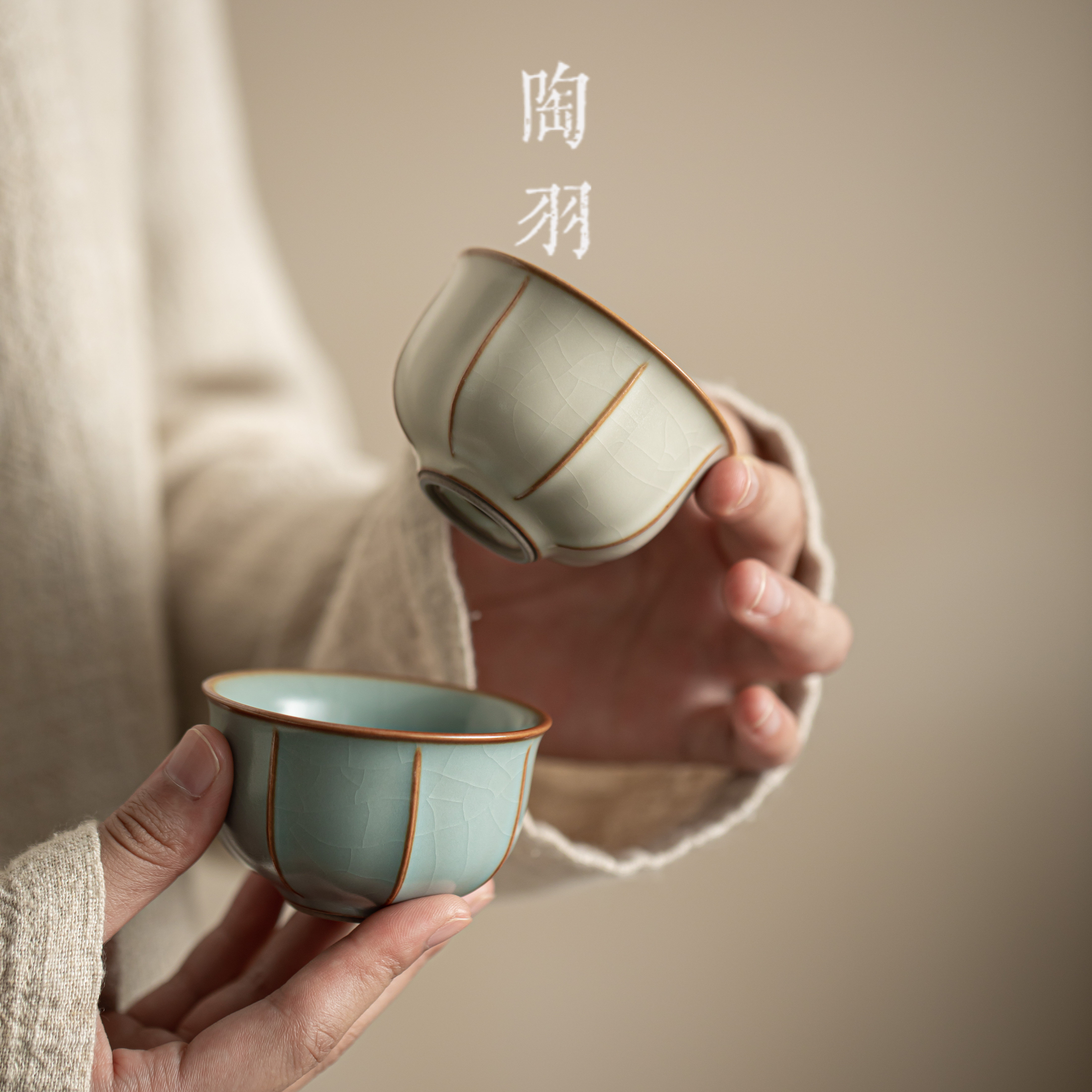 陶羽汝窑高档茶杯陶瓷功夫茶具单杯茶盏主人杯个人专用喝茶杯