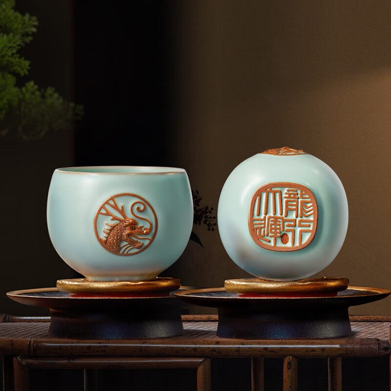 东道汝窑龙年生肖限量款茶杯主人杯单杯开片可养汝瓷高档送礼茶具